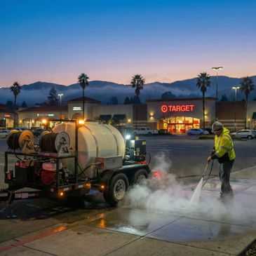 Clean sidewalks are key to shopping center maintenance, our mobile hot water pressure washing system allow us to bring a non toxic cleaning solution to your location with ease.